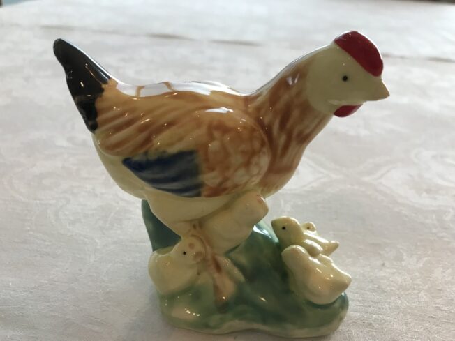 Min mor var bra på att ta hönsen med sitt mjuka sätt och handlag. Låt ligghönsen vara var hennes klassiska svar, hönsen tror att dom ruvar. Äggen var inte befruktade då vi inte hade någon tupp. Vit Leghorn var hönsrasen vi hade, de värpte så pass mycket ägg att vi kunde sälja till bygden förutom familjens behov. En höna börjar värpa ägg efter 5 eller 6 månader och håller på upp till ett par år. Vi hade en huggkubb i trädgården mot smedjan. Friska höns som inte längre värpte ägg togs till huggkubben. Min far tog hönan med varlig hand och lade hönans hals mot huggkubben. Han tog fram en nyslipad yxa och högg snabbt av hönans hals. Hönans kropp sprang sedan några meter för att därefter segna ner. Man hade nackat en höna som sedan plockades och styckades. Hönan användes som mat i hushållet.
